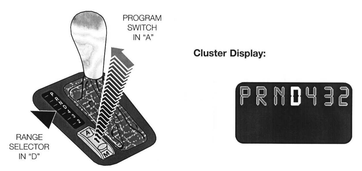 - "A" - selection for the economy program. This program is automatically initiated at engine start up. It is recalled when "A" is selected. This program provides a shift program suitable for a normal driving style. The shift points are set to provide fuel efficiency as well as driving pleasure.