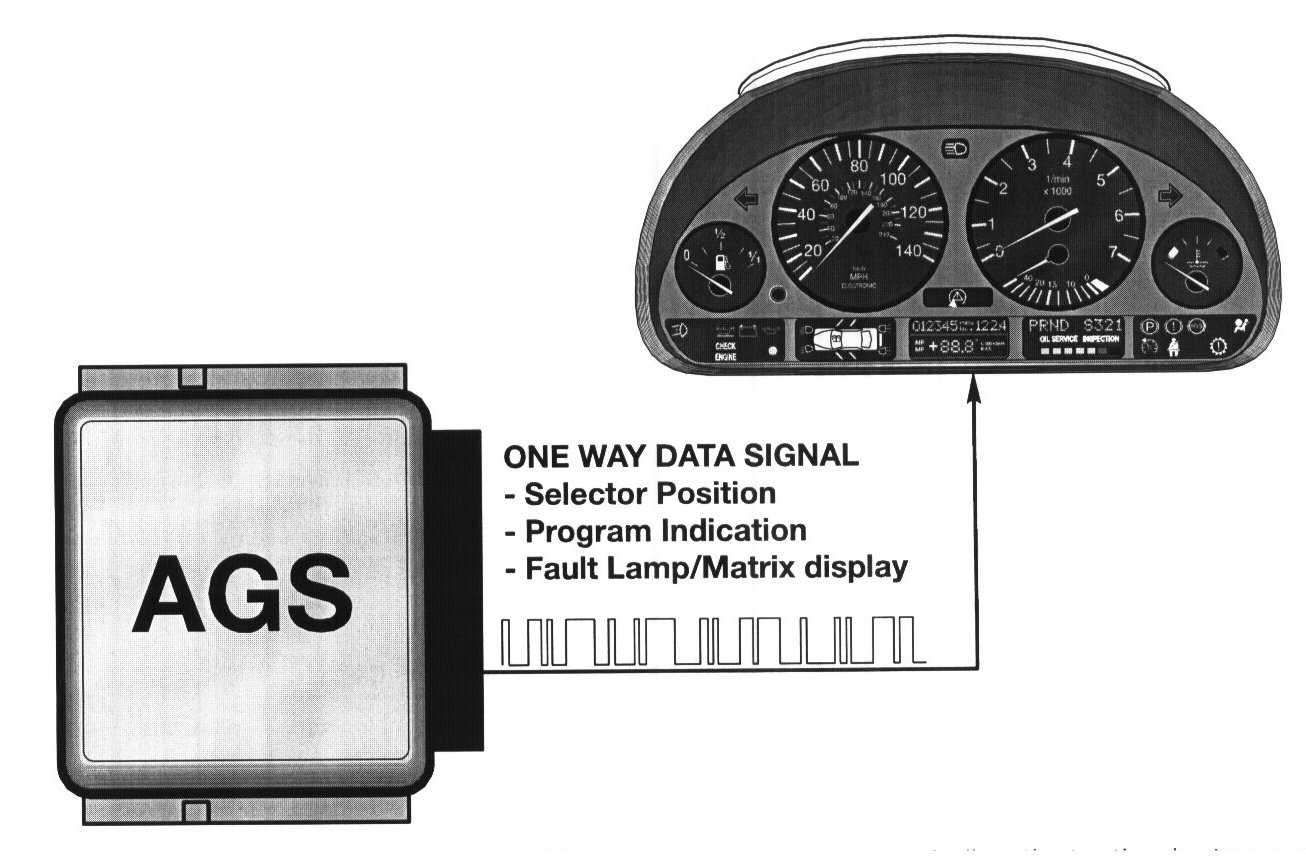 98 Model year E38/E39 vehicle AGS systems communicated directly to the instrument cluster via CAN. The CAN interface provides a mass of intercommunication between systems.