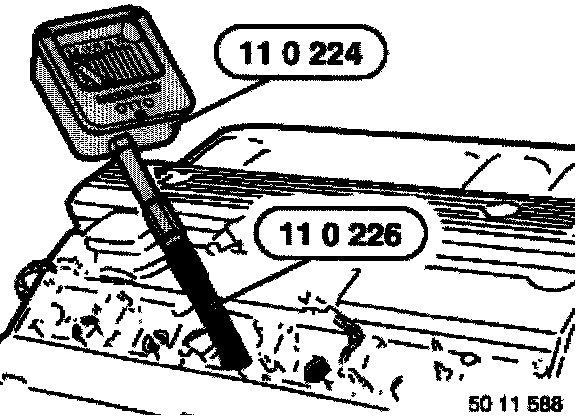 Screw special tool 11 0 226 by hand into spark plug thread and connect special tool 11 0 224.