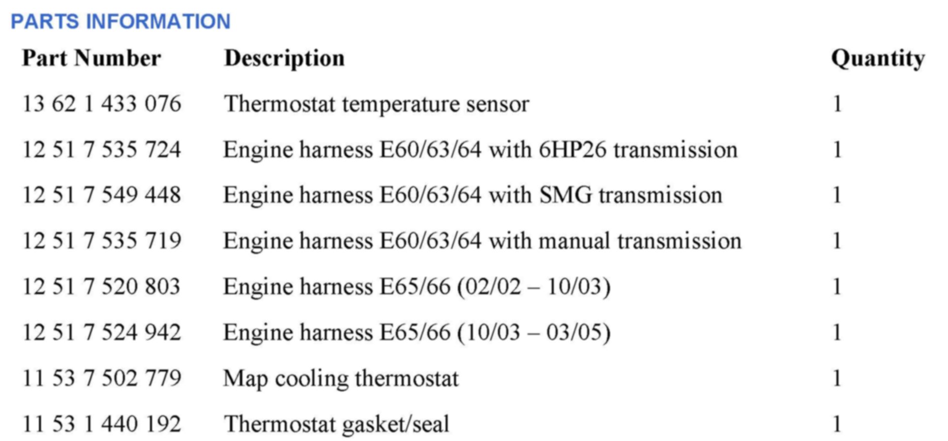 ^ Increased contact resistance between the thermostat temperature sensor, the engine wiring harness and the DME connector.
