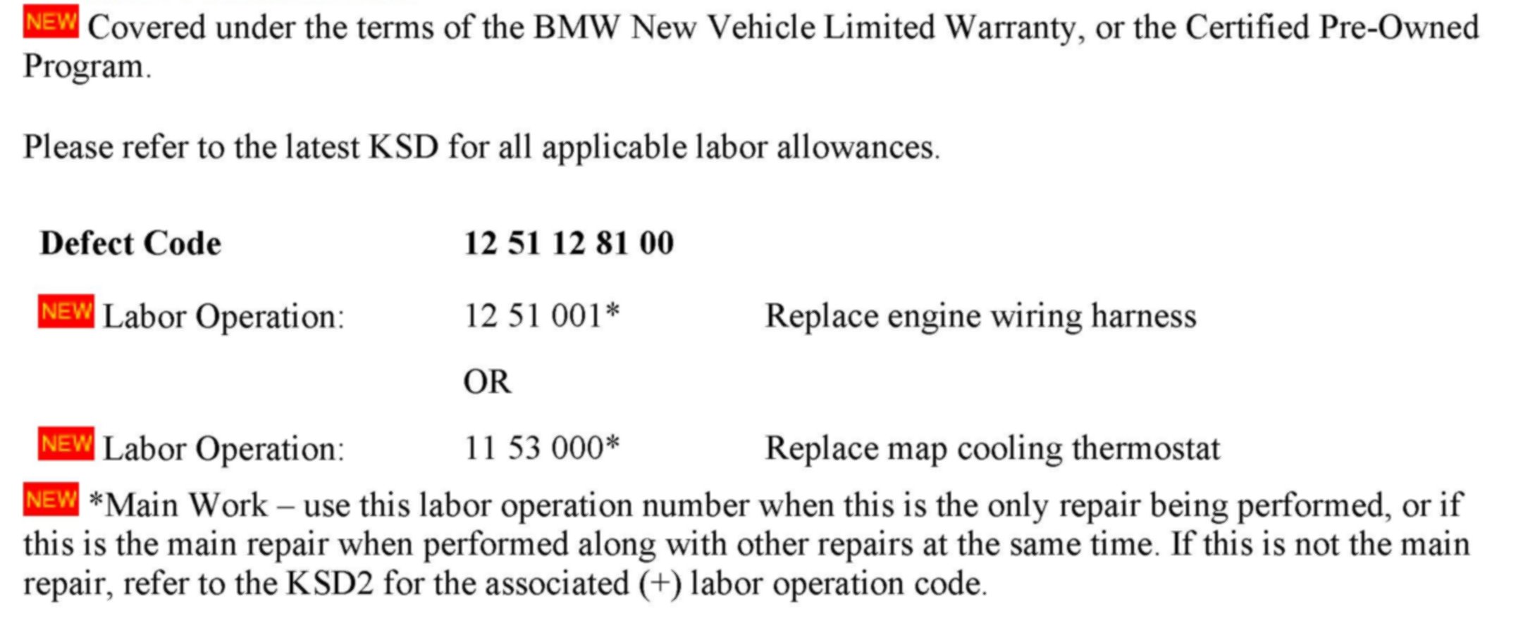 ^ If the vehicle returns to the workshop with the same complaint (Service Engine Soon illuminated and fault code 279B/2EF4 stored in DME) and the thermostat has already been replaced during the previous repair, it is highly unlikely that the map cooling thermostat failed again. The increased connection resistance would most likely cause the repeat failure. The engine wiring harness and temperature sensor should be replaced.