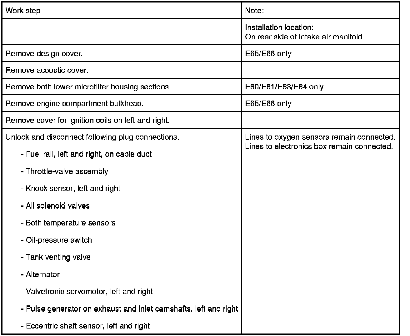 13 62 010 - Removing and installing/replacing differential pressure sensor (N62, N62TU)