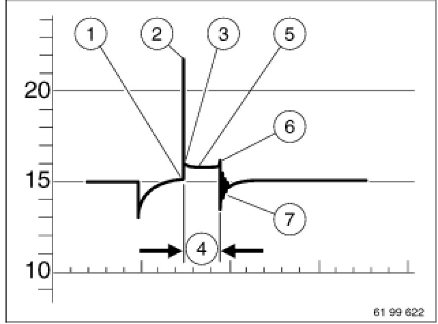 The following normal oscillogram is applicable to engines with multiple-spark ignition from the production date of April 2001:
