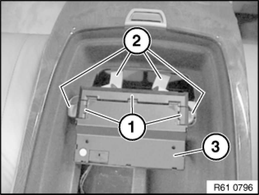 61 31 156 - Removing and installing (replacing) control unit in center armrest at rear