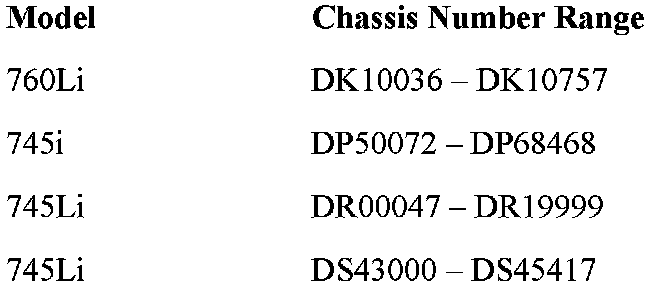 This Service Action involves E65/E66 (7 Series) vehicles, which were produced from start of production to January 20, 2004.