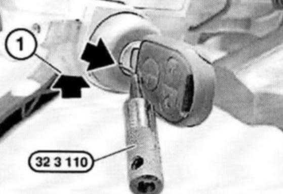 Note: The lock (1) is unlocked with special tool 32 3 110 and the locking cylinder can now be removed. If necessary, turn special tool in hole.