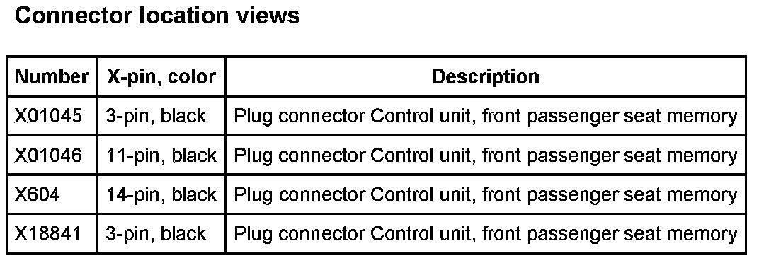 A20 Control Unit, Front Passenger Seat Memory