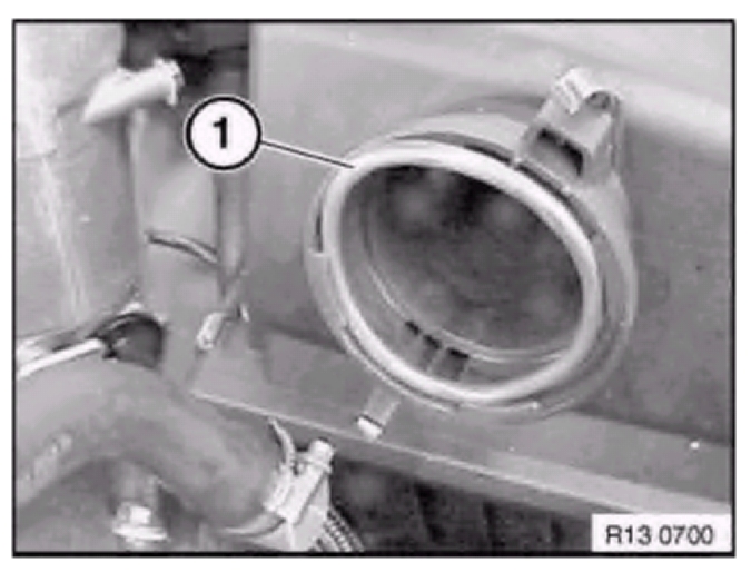 Check sealing ring (1) between air-mass flow sensor and intake filter housing for damage, replace if necessary.