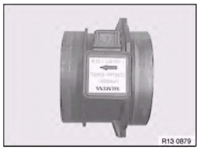 Install air-mass flow sensor between intake filter housing and intake hose so that arrow points in direction of intake hose.