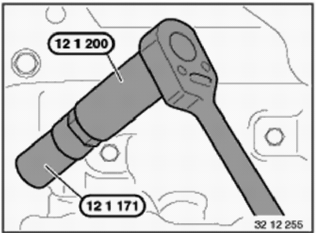 Unscrew and remove spark plugs with special tool 12 1 171 in conjunction with special tool 12 1 200.