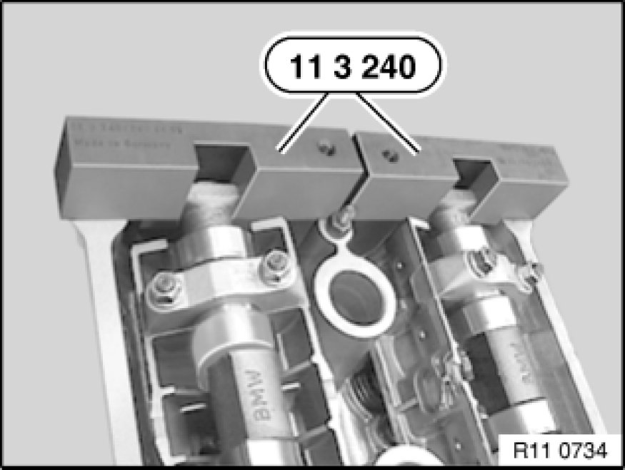 Secure camshafts with special tool 11 3 240 11 3 240 Locking Fixture.
