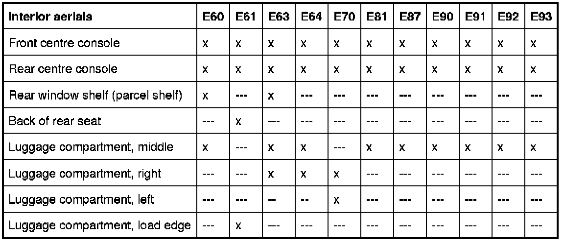 On the following models, the luggage compartment counts as part of the interior: E61, E70, E81, E87, E91.