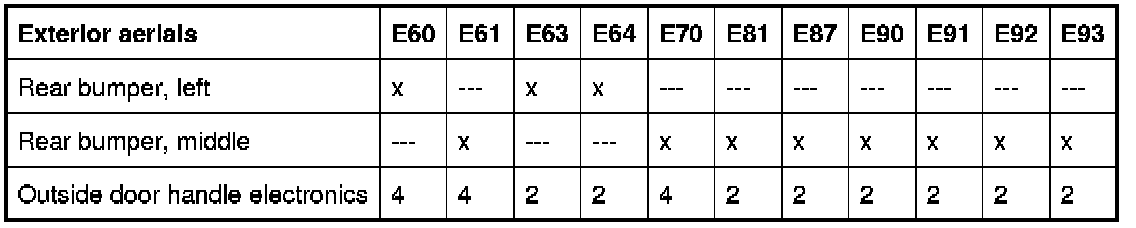 - The remote control (FBD) receiver is integrated into the aerial amplifier. (> E81, E87, E93: FBD receiver integrated in interior mirror)