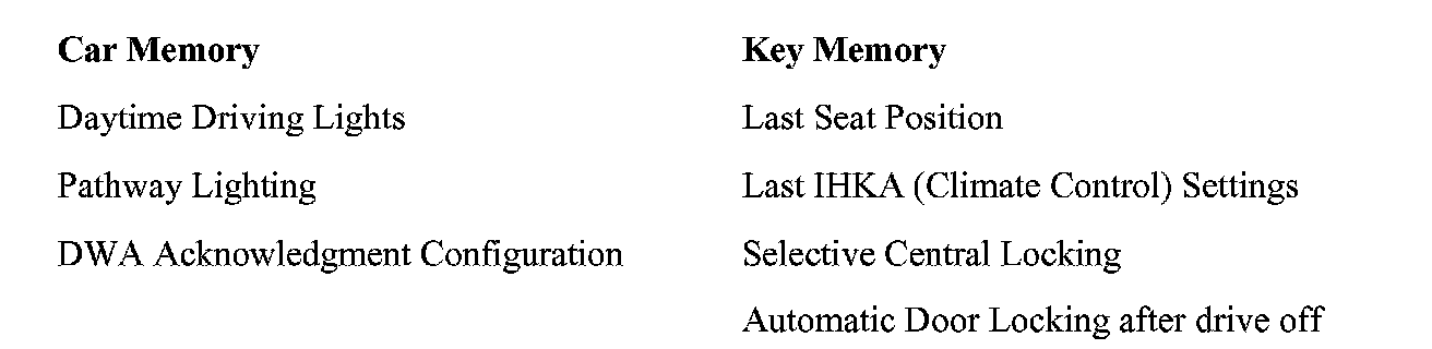 "Car Memory" includes functions which are activated regardless of the vehicle key being used.