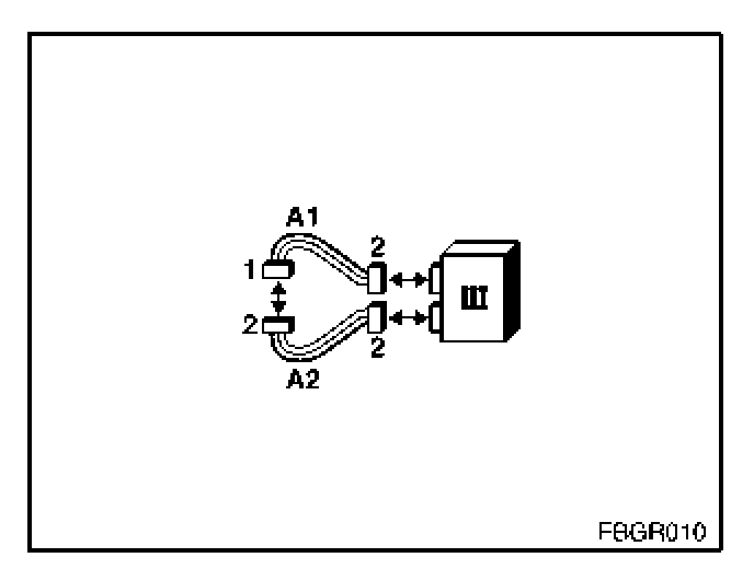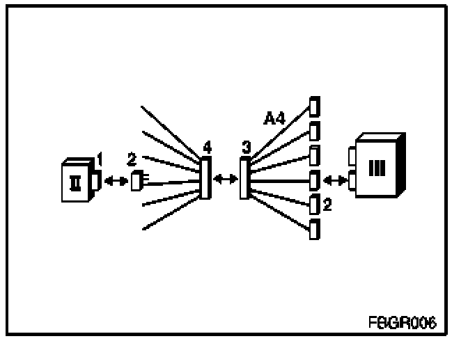 2. To test the fiber-optic cable using the satellite (II), the six-pin SIM wiring harness adapter (A4 = 663134) is required.