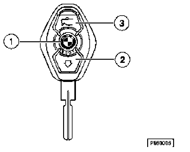 The key-chain transmitter consists of the mechanical vehicle key, the EWS electronics and a radio transmitter.