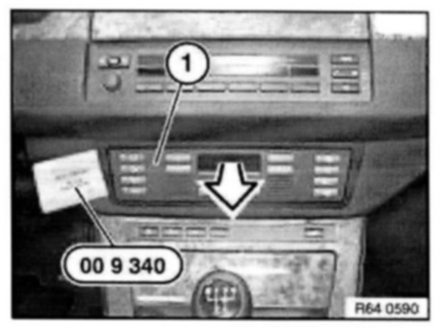 Unlock heating controls (1) with special tool 00 9 340 and pull out in direction of arrow.