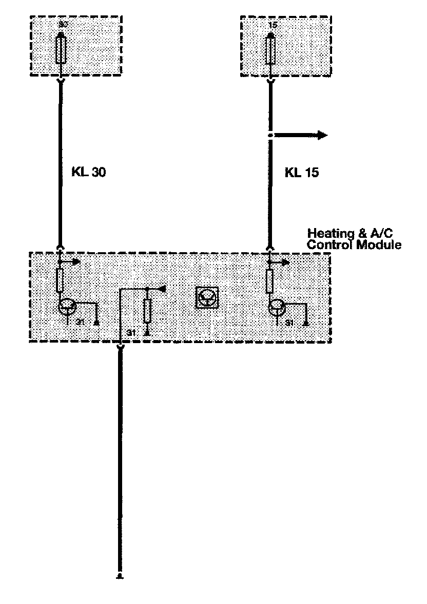 Switched ignition power (KL15) is required for IHKA operation when the ignition is in the "run" position. This allows the system to operate after the vehicle has been started (or limited IHKA operation if the engine is not running).