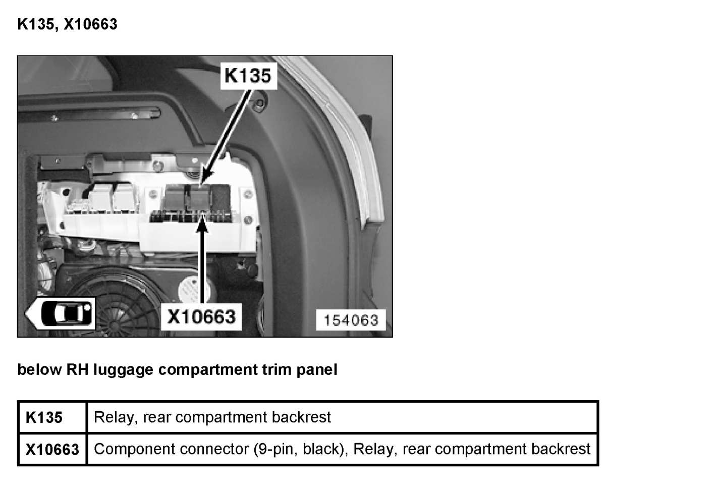 The rear fuse/relay panel is located in the right rear side section of the luggage compartment, behind the trim panel.