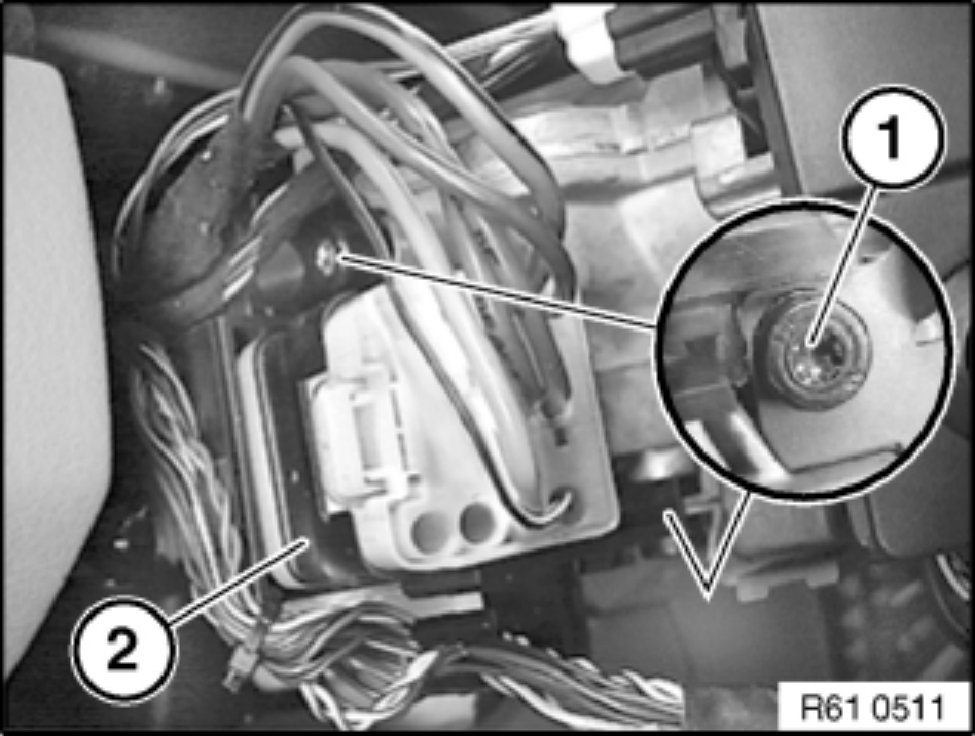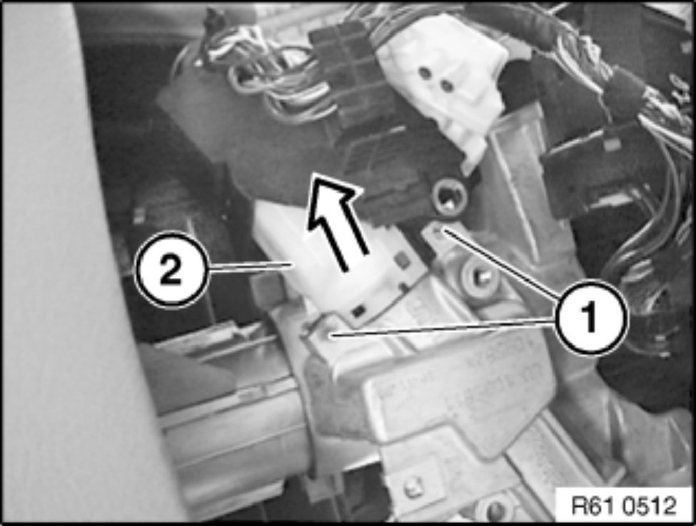Detach ignition switch (2) in direction of arrow.