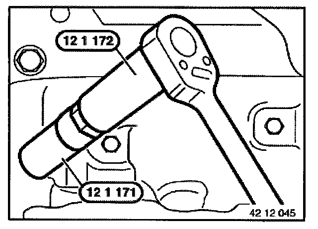 Tighten down spark plugs with special tool 12 1 171 and special tool 12 1 172 (torque limiter).