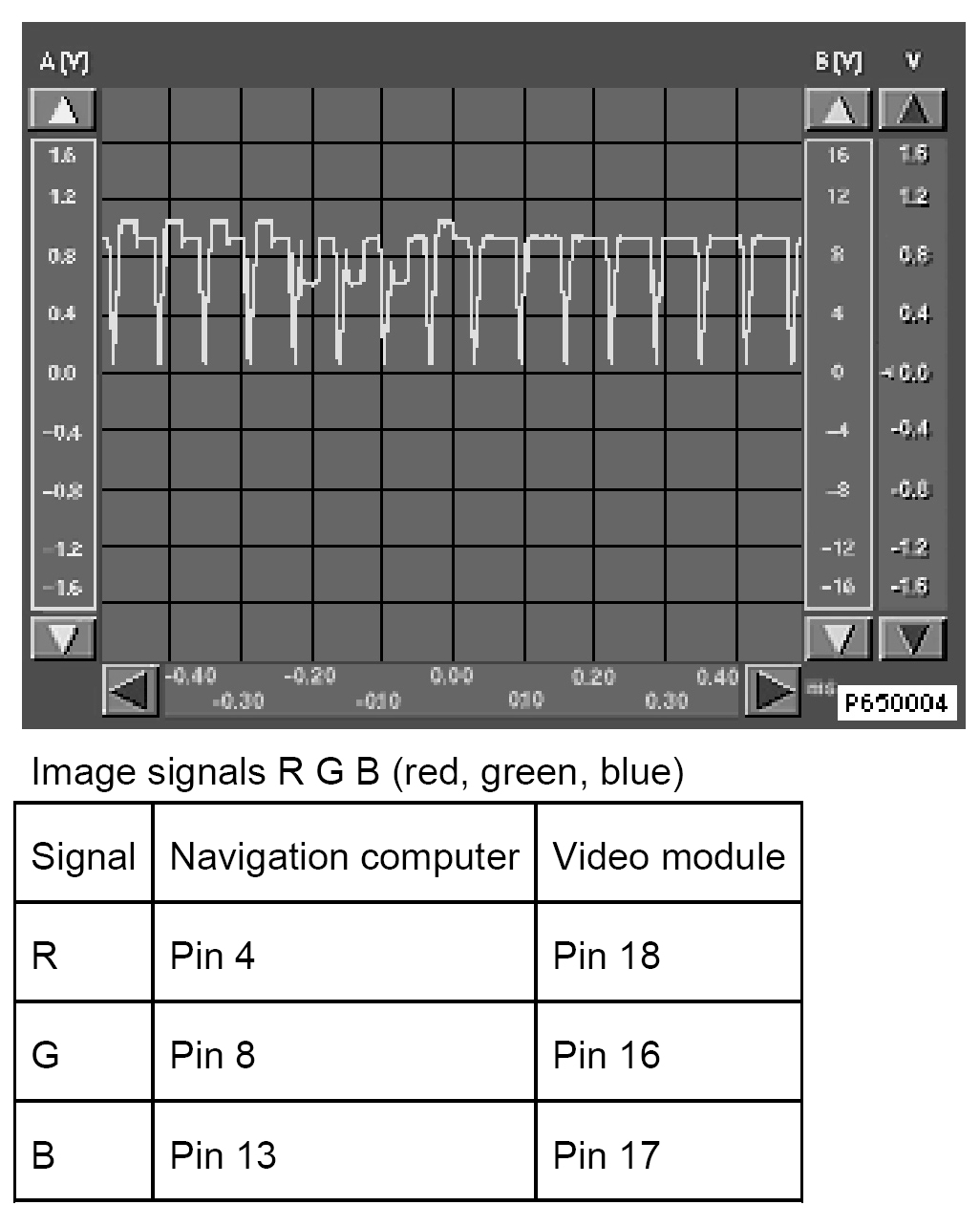 Image Signals R G BAll oscilloscope images are reference values and may deviate depending on the image content!Navigation computer - video module synchronisation