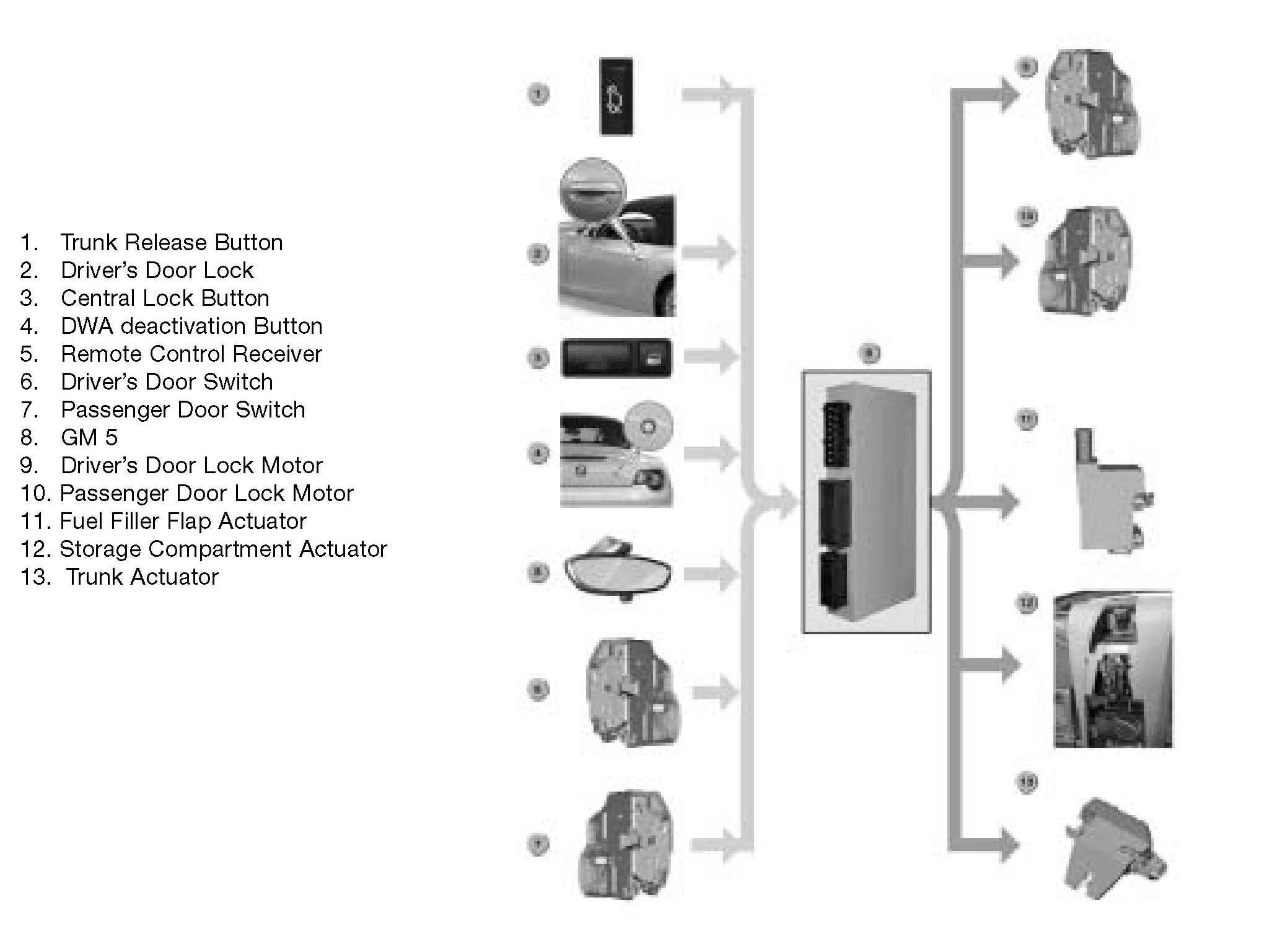 ^ The glove compartment is not operated by the central locking system.