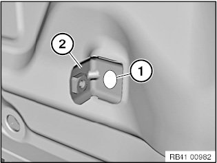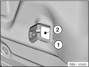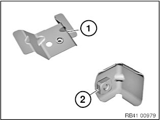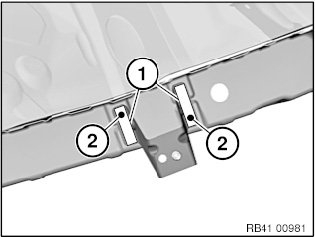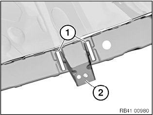 Release welded connection in area (1) and remove holder (2).