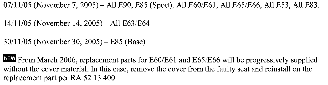 E53 (X5), E60, E61 (5 Series), E63, E64 (6 Series), E65, E66 (7 Series), E83 (X3), E85 (Z4), E90 (3 Series)