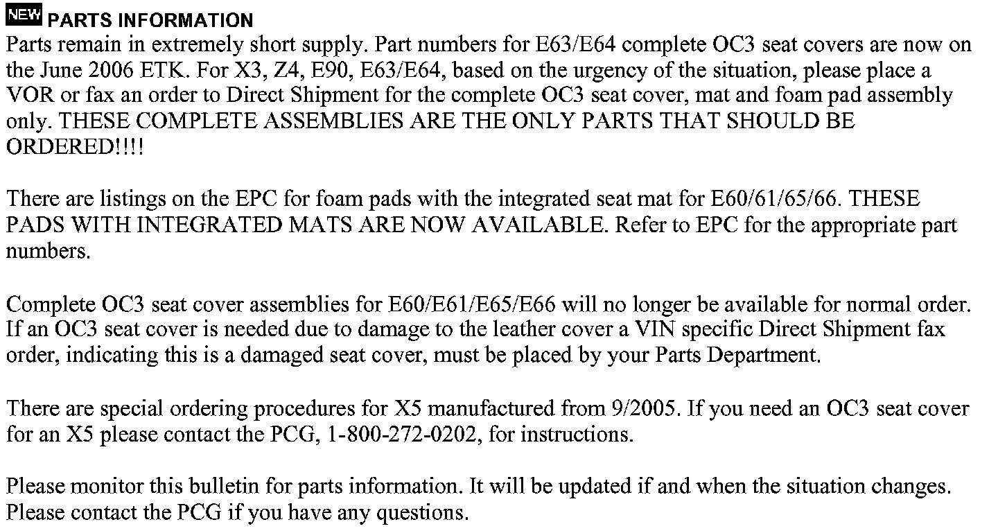 PARTS INFORMATION