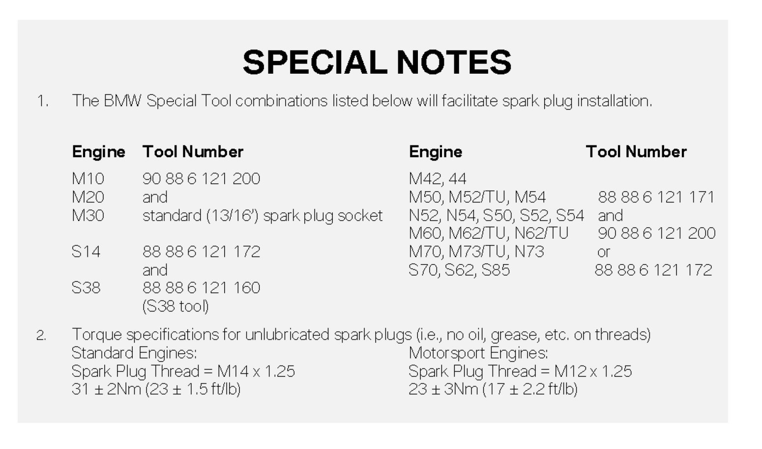 Torque Specifications