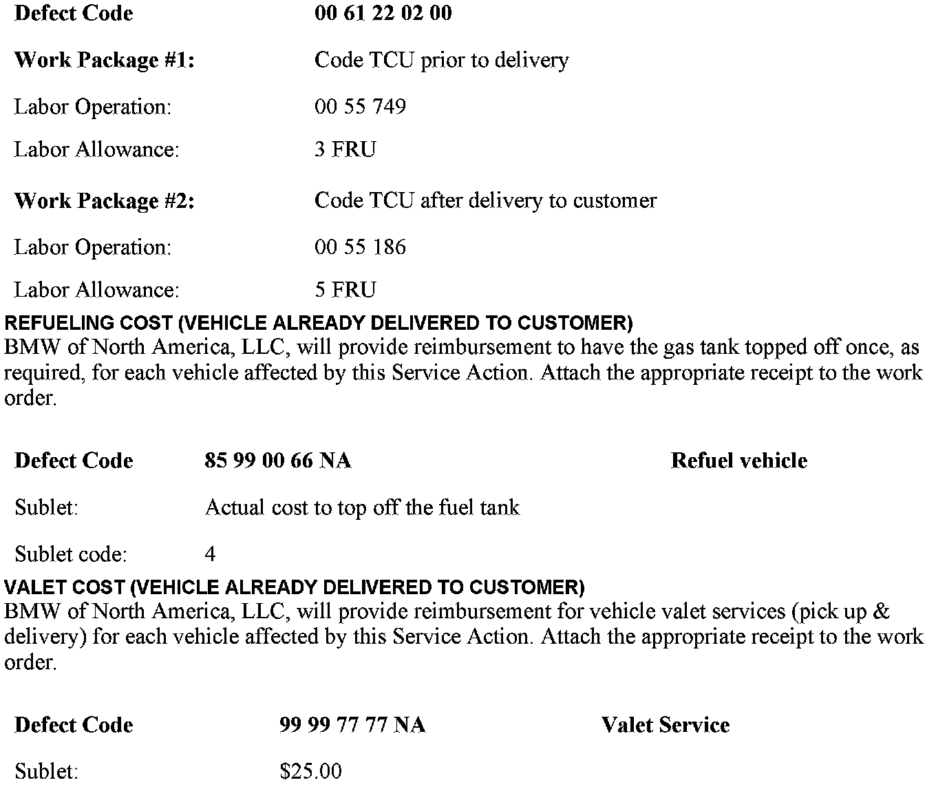 This may cause the manual and automatic emergency call and roadside call (BMW ASSIST), not to function. This Service Action recodes the TCU.