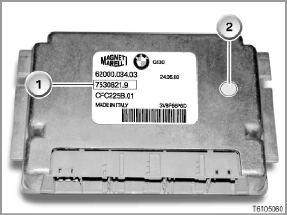 Only SMG control modules with the above part number have to be replaced if the blue point (2) is missing.