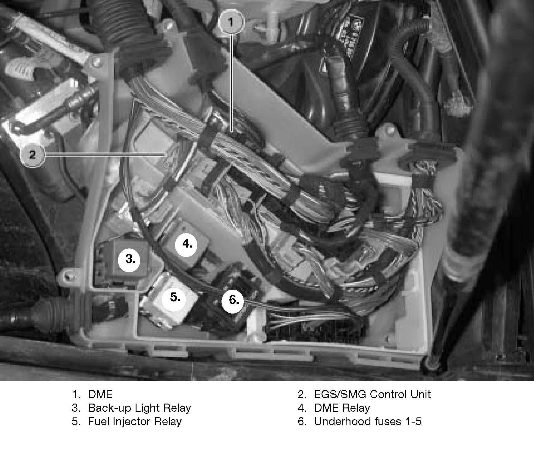 Locations of control units in engine compartmentThe control units of the following important systems are fitted in the engine compartment of the Z4: