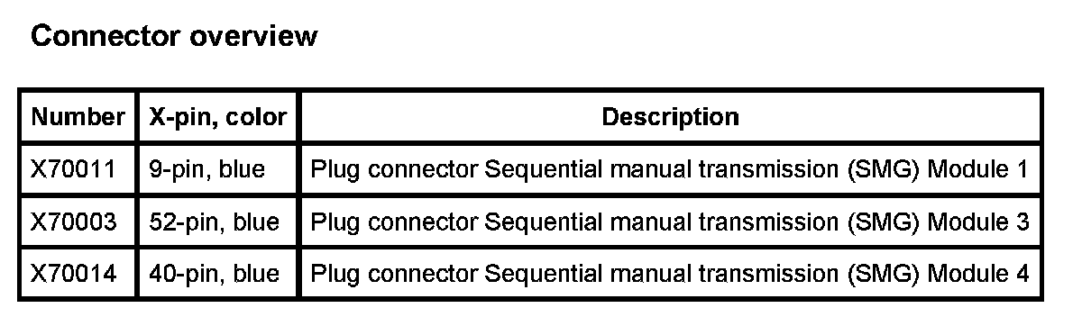A70010 Sequential Manual Transmission (SMG) (M54 Engine or N52 Engine):