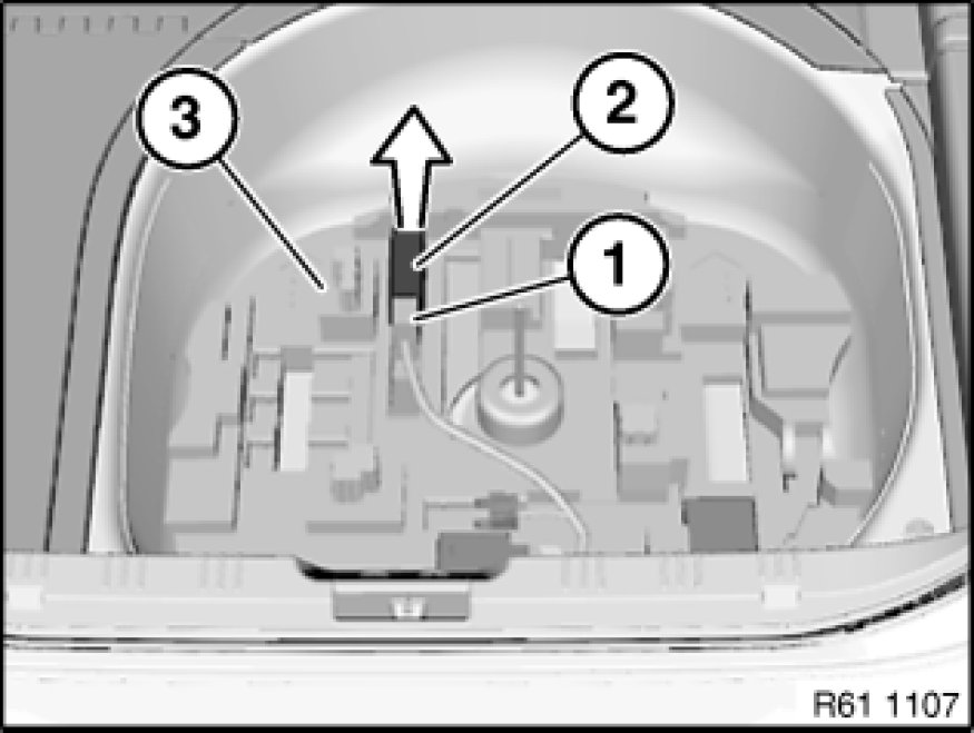 Remove power module (2) in direction of arrow from mounting for control units (3).