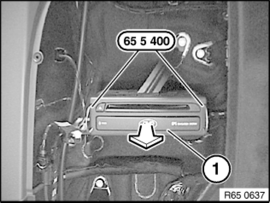Unlock navigation computer (1) with special tool 65 5 400 65 5 400 Release Bracket and pull out in direction of arrow.