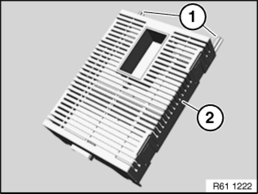 Release screws (1), feed out light module (3) in direction of arrow and remove.