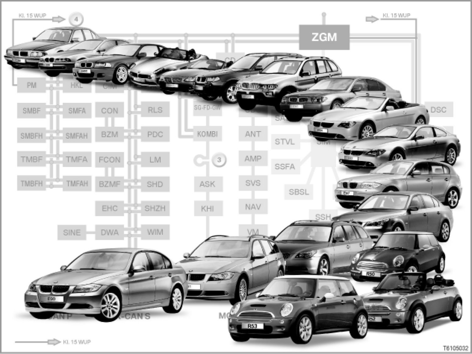 Since the start of series production of the E65 (electrical system 2000), the control unit designations have been harmonized. Earlier model series have varying control unit designations.