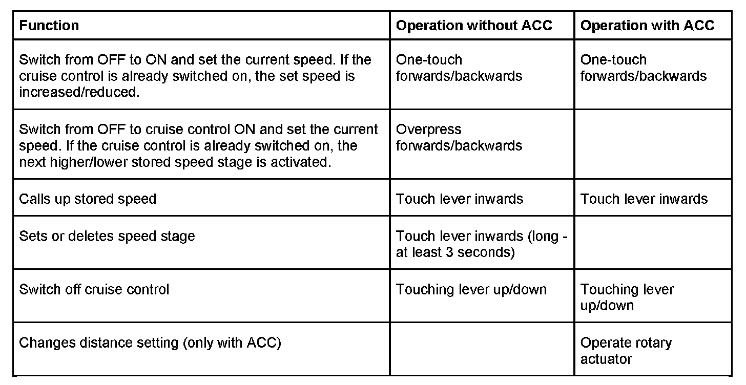 Steering-column lever, bottom left: Cruise control