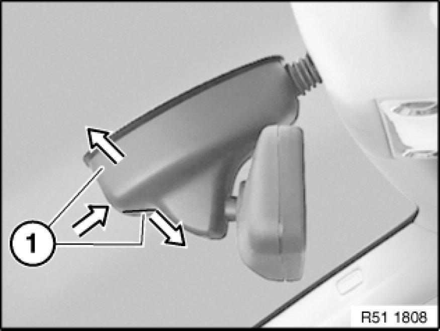 Expand two-part mirror base cover (1) by pressing from below and detach.