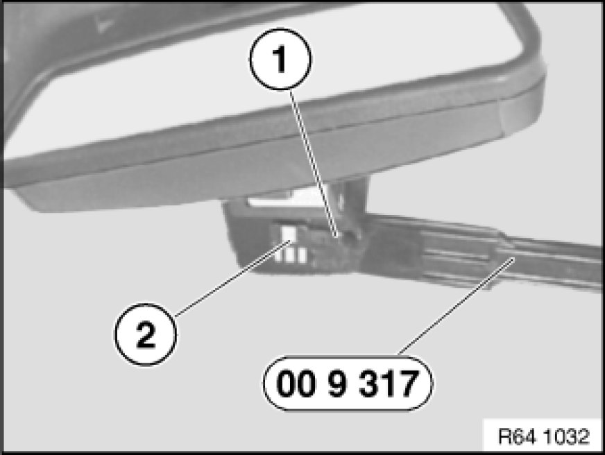 Lift off fogging sensor (2) with special tool 00 9 317 00 9 317 Trim Panel Wedge and slowly pull off from windshield.