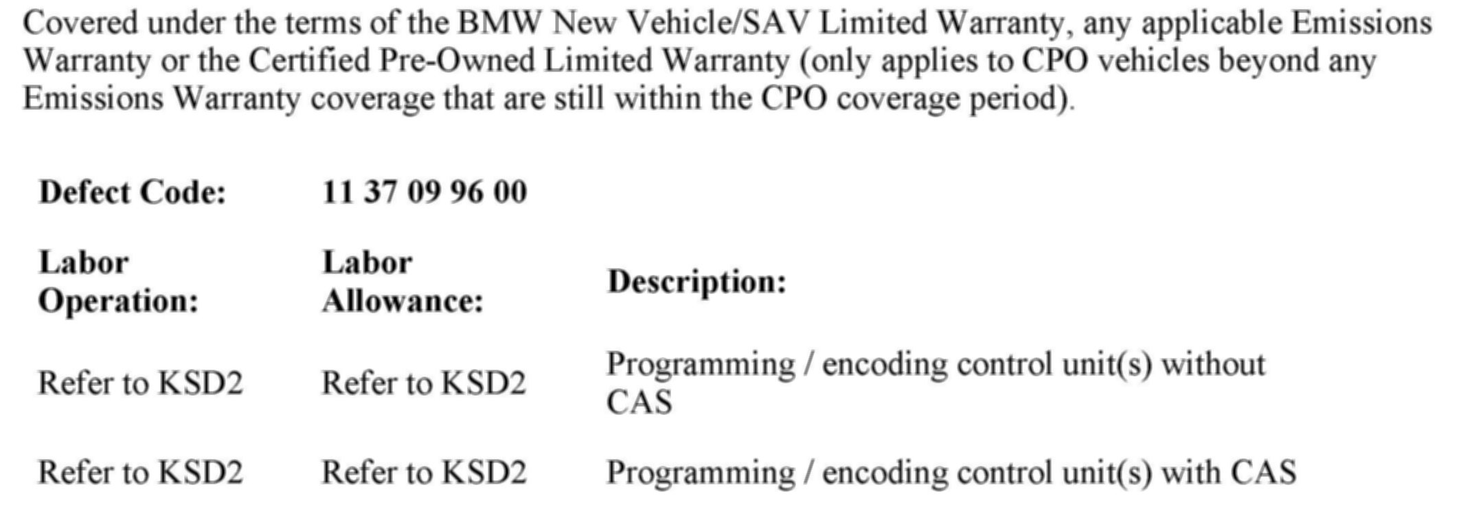 Program the vehicle to E89X-09-09-515 or a more recent version.