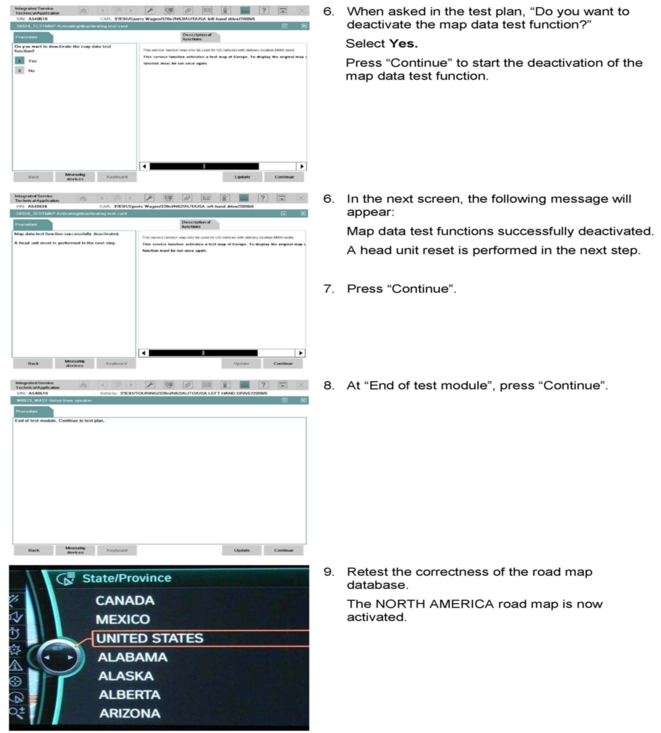 The road map test function is activated.