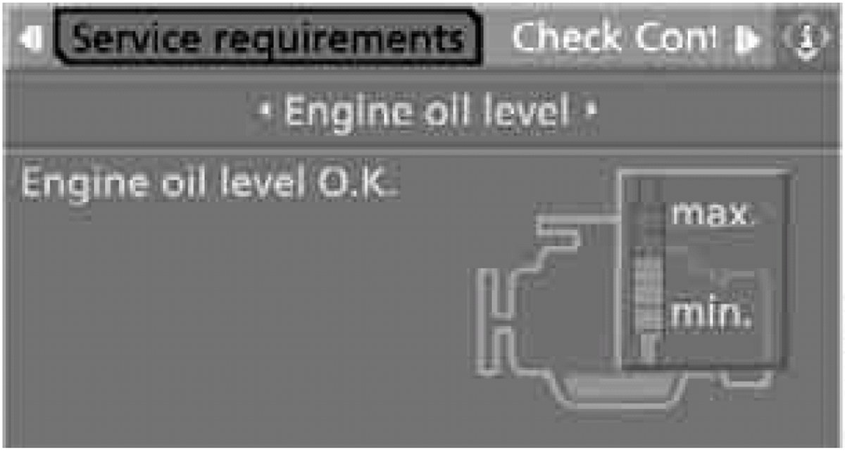 6. Change to the second field from the top if necessary. Turn the controller until "Engine oil level" is selected and press the controller. The oil level is displayed.