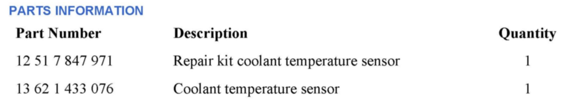 Follow the ISTA D Repair Instruction: 12 51 xxx - Exchanging plug-in contact of coolant temperature sensor (S65).