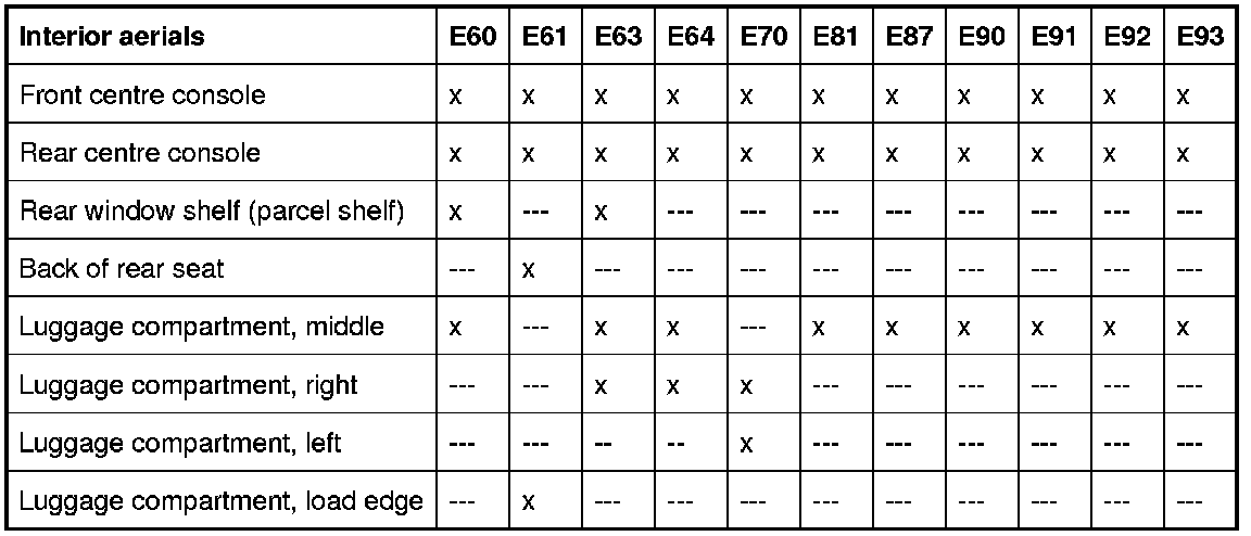 On the following models, the luggage compartment counts as part of the interior: E61, E70, E81, E87, E91.