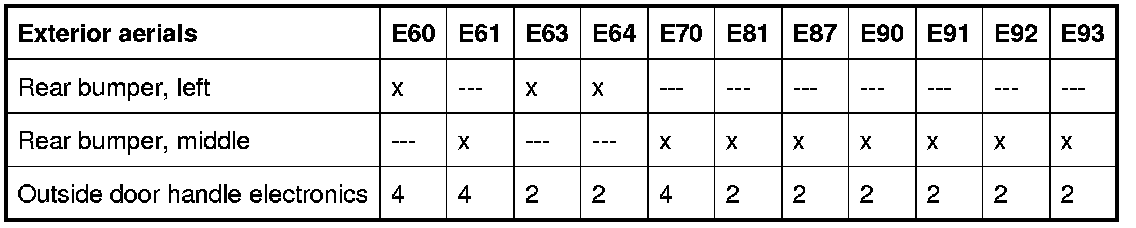 - Outside door handle electronics (number depends on model concerned)