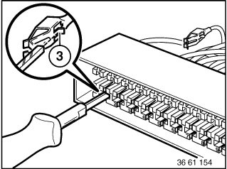 With special tool 61 1 136 or 61 1 137 (pressing-off tool), press back retaining hooks (3) of appropriate contact and pull out cable.