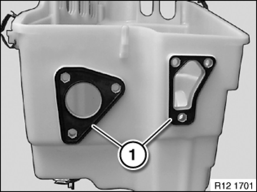 Make sure gasket (1) is correctly seated on electronics box.